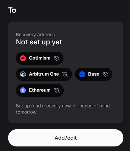 The app will walk you through signing the recovery setup authorization for each chain (network). After the process is complete, your Fund Recovery screen will show your Recovery Address.